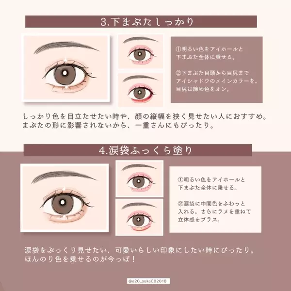 Lips リップス アイシャドウの塗り方を9パターン解説しました アイシャドウの入れ方が分からない メイク初心者さんやいつも似たようなメイクになってしまう方におすすめ 塗り方を変えるだけで可愛らしい 美人 丸い目 切れ長など目元のイメージ
